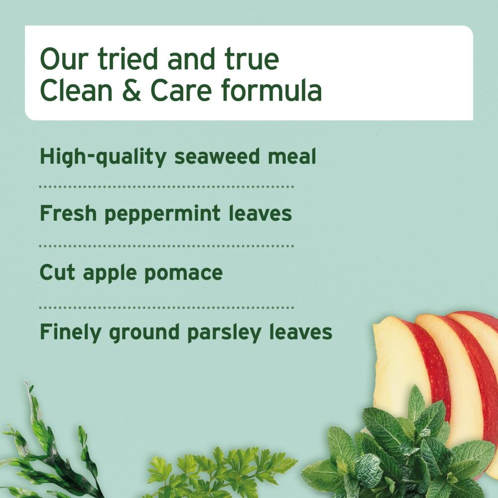 88.6% Rinderpansen, pflanzliches Glycerin, Zellulosefasern, 4% natürliche Mischung (Algenmehl, geschnittener Apfeltrester, fein gemahlene Petersilienblätter, feine Pfefferminzblattpartikel), Propolis