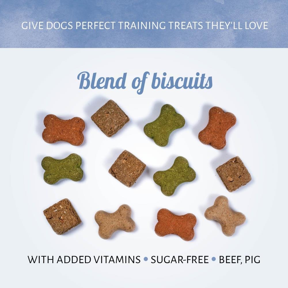 Unser Bunter Mix wird in jedem Leckerli langsam im Ofen gebacken, um die natürlichen Aromen in all den Varianten zu erhalten, die Ihr Hund gerne fängt, kaut und frisst. Diese zuckerfreien Leckerlis sind ein hervorragender Snack zum Gassigehen und das Training.