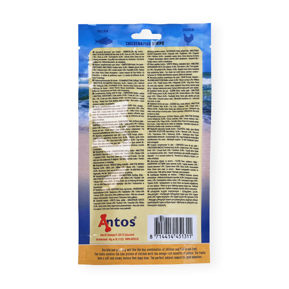 Schenken Sie Ihrem Hund ein strahlendes Lächeln auf die schmackhafteste Art und Weise, mit unseren Chicken&Fish Strips. Hergestellt aus nur zwei Zutaten, nämlich Huhn und Seelachs, bieten diese großartigen Leckerlis Ihrem geliebten Freund zahlreiche Vorteile.